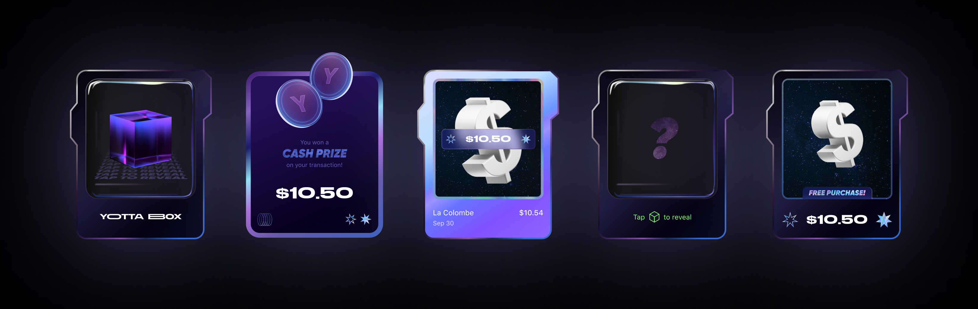 We also designed a new core feature: Yotta Boxes. A user receives a Yotta Box on every Yotta Debit or Credit Card transaction. Gaining inspiration from traditional gaming VFX, we turned daily transactions into a unique and rewarding in-app game experience, encouraging users to use their Yotta cards.